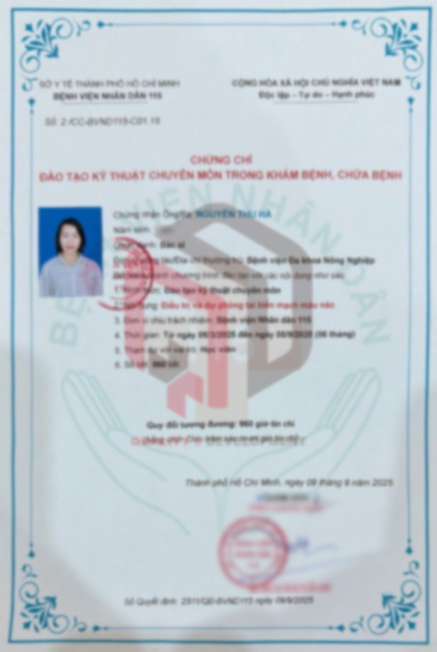 các kỹ thuật và chứng chỉ chuyên môn như siêu âm, điện não đồ, tiêm khớp – tiêm gân,